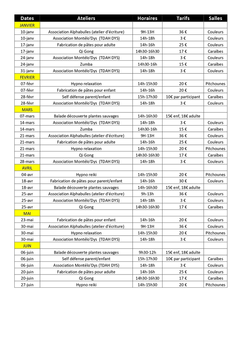Voici le nouveau planning des activités proposées à la MJC pour la saison 2025-2026 !